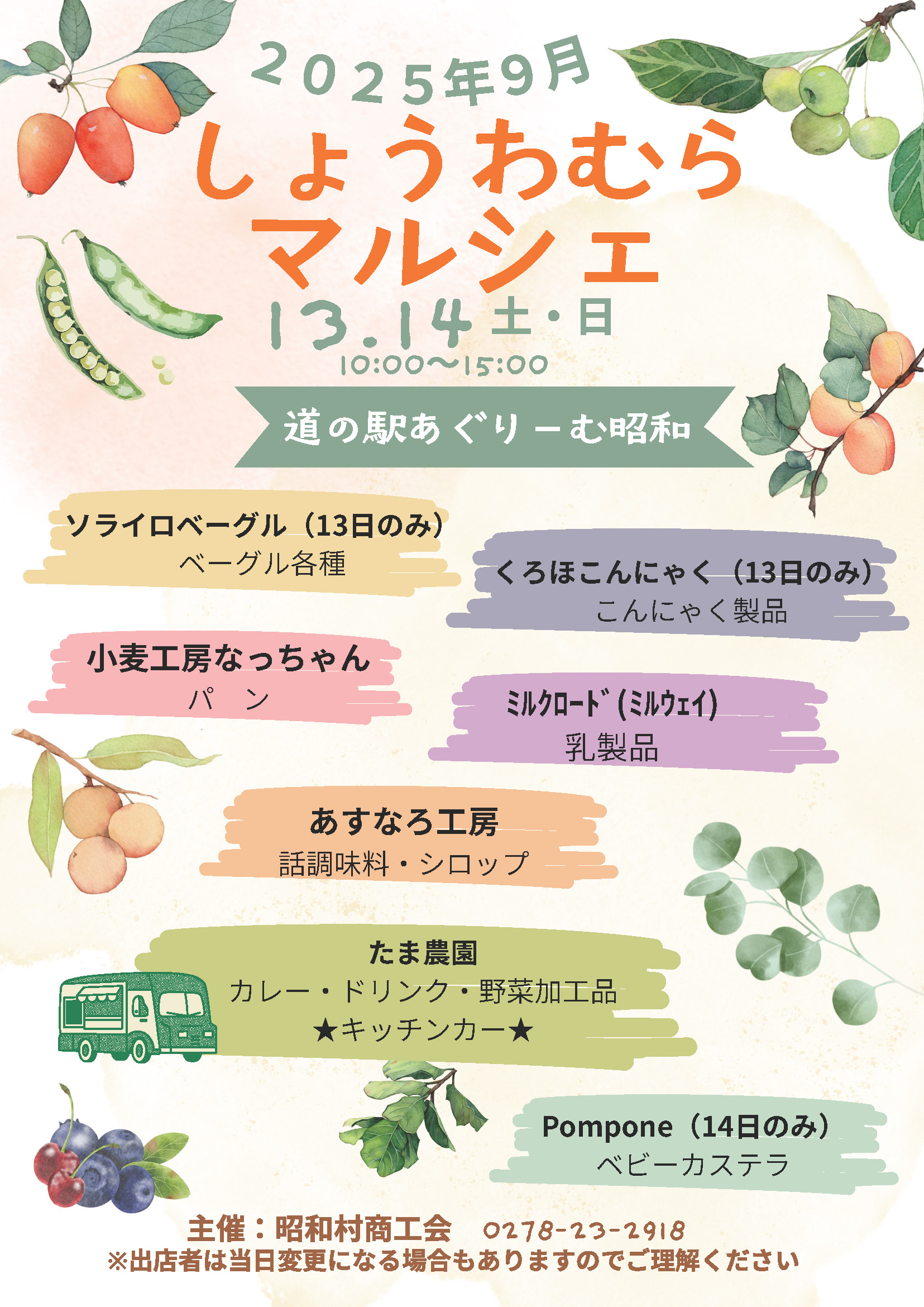9月度「しょうわむらマルシェ」開催のお知らせ